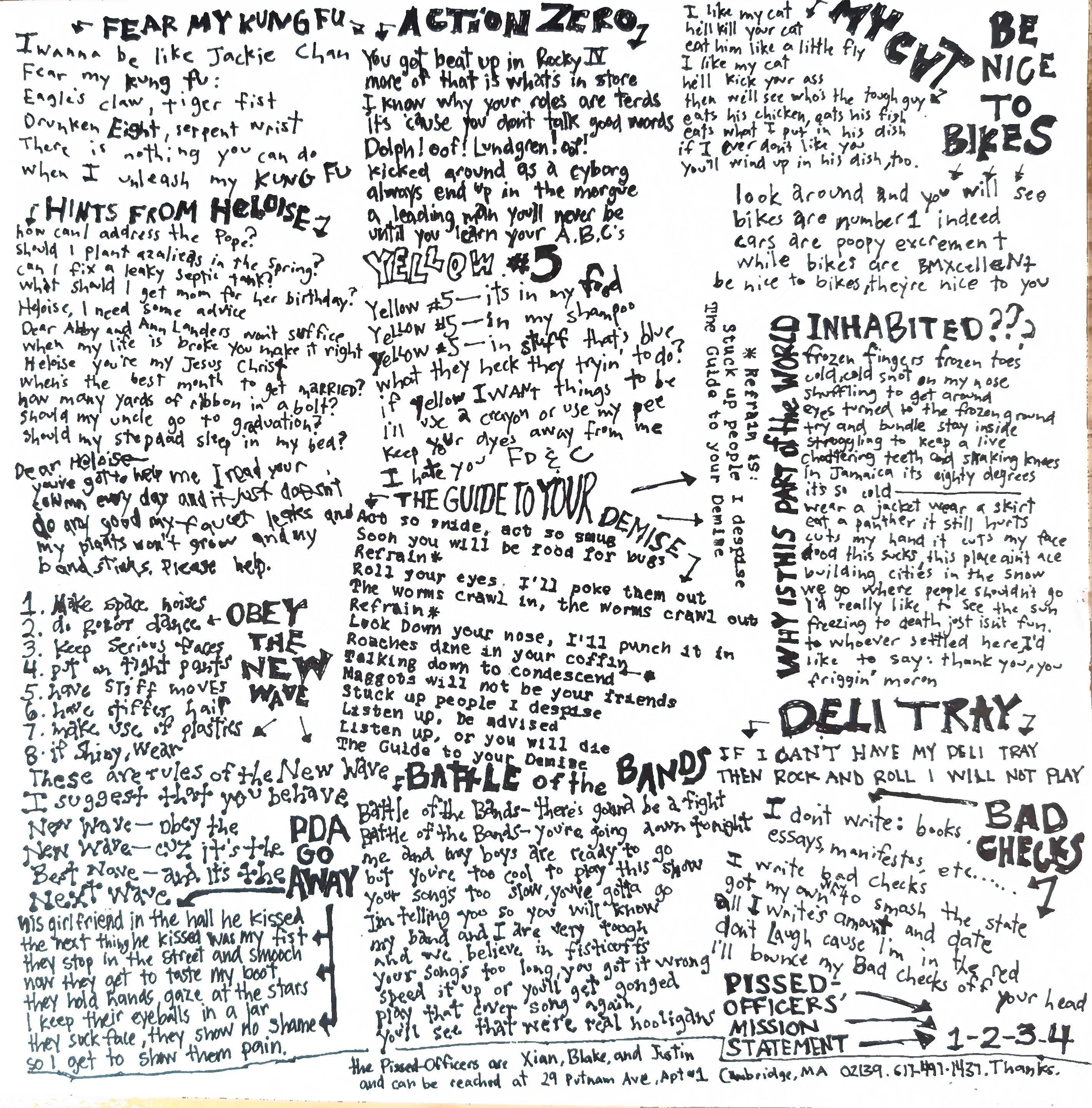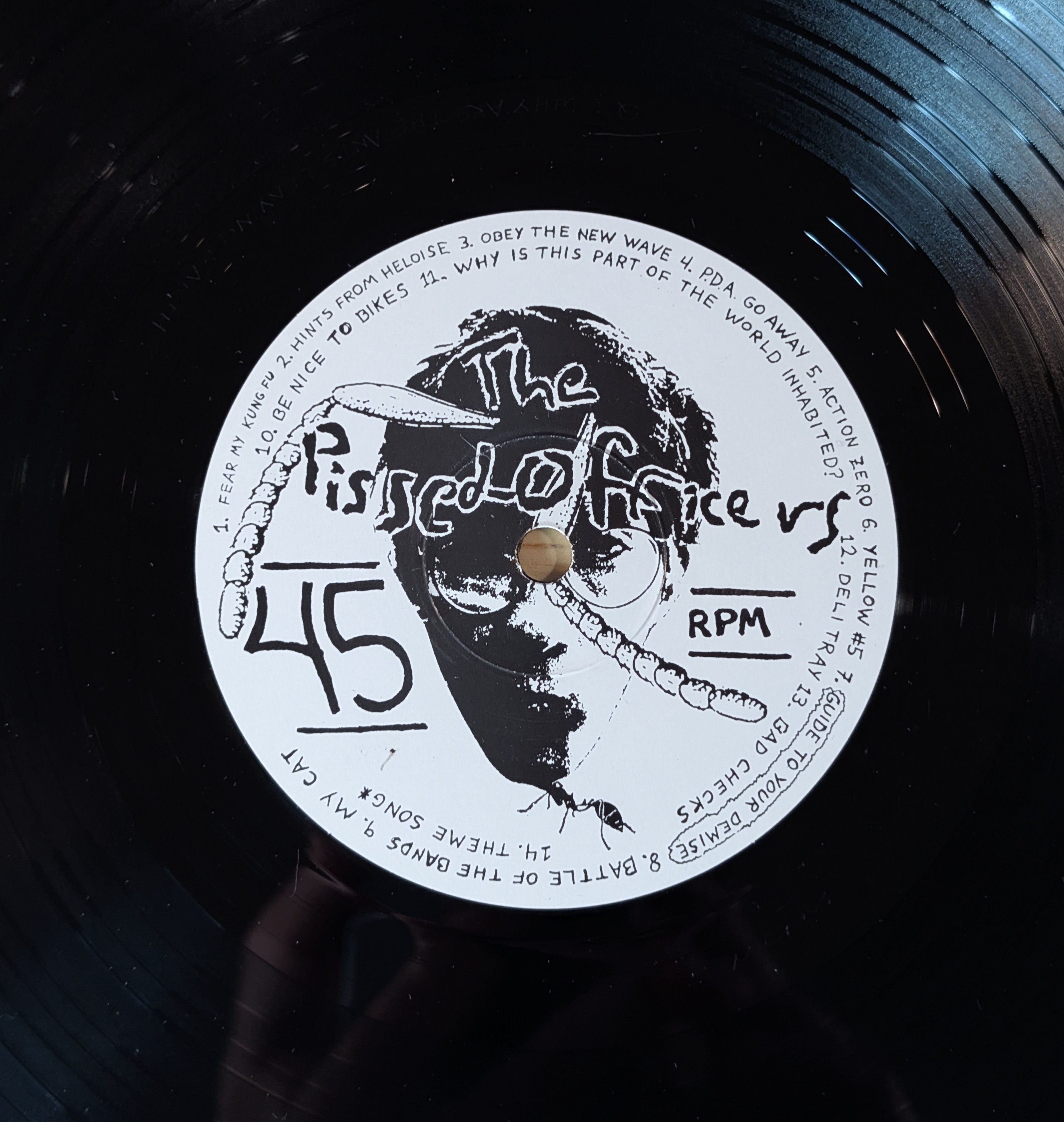 The second release from tPO, again sharing a split record with Gerty Farish. This release contains 14 tracks and comes in at around 8 minutes. These tracks are short bursts of energy. The cover is perforated with plans to turn it into a rocket (the inside appears to be spray painted as well to add to the effect). Among the various items included with the release was a map - I'm including here - which is pretty funny. Between this and the Abduct release, these guys defintitely weren't skimping on the packaging. And again, fascinatining that it would only be 6 years from this to Charm School.