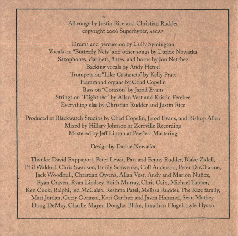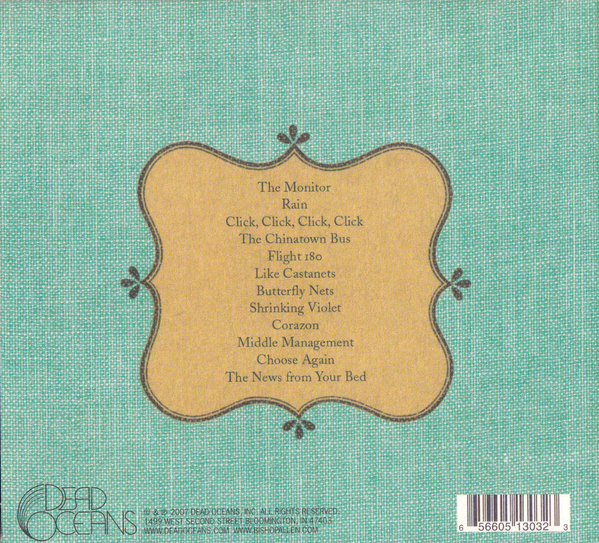 The second full length release from Bishop Allen. 10 of the 12 tracks were previously heard on the EP a month collection - with some slight tweaks here and there. Released on the Dead Oceans label.