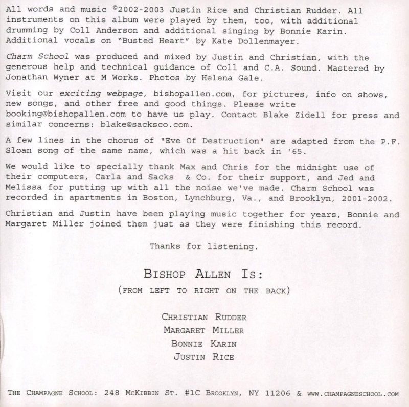 The debut release of Bishop Allen. Released on the band's Champagne School label.